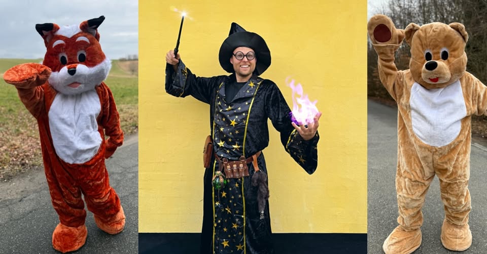 Lørdag den 8. november kl. 11 kan du igen møde Androkles, troldmanden i lære, i Allerød Bymidte ✨ Han tager publikum med på sjove og lærerige eventyr sammen med sine magiske dyrevenner Buster Bjørn og Rikke Ræv 🐻🦊